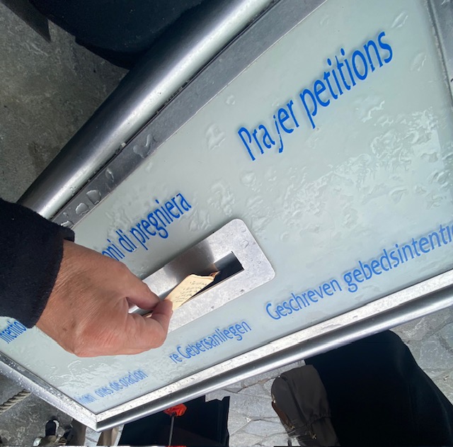At Lourdes I left a copy of my prayer lists at the grotto, joining them with the many thousand prayers offered day by day there.