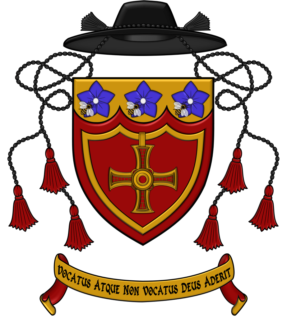 After due process I was granted my personal coat of arms and heraldic badges. There are two versions, recognising in one that I am a Canon of the church. A version of the arms is above.