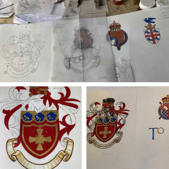 I was delighted that Rob, the husband of a friend, was the heraldic artist, and Tina, his wife, kept me up to date with his progress.