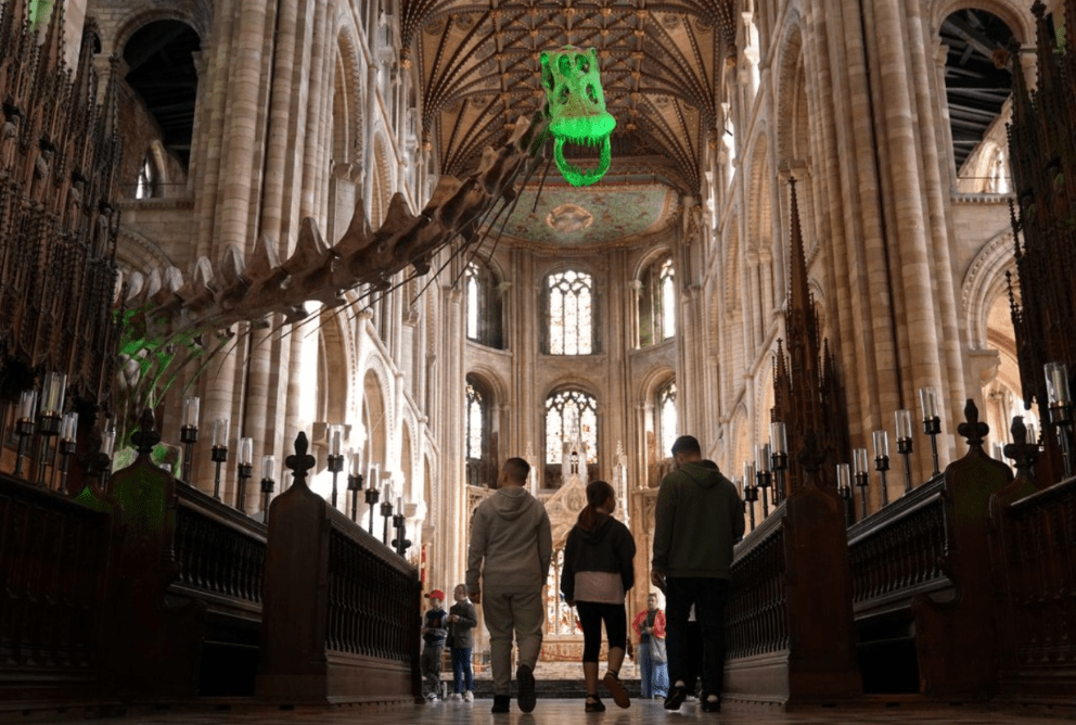 Of course it is lovely to see many visitors, and, for example, school parties, visiting a cathedral. It is especially good when guides help interpret the Cathedral spiritually for such groups, rather than just indicating items of historical value. It is also good when Cathedrals set aside a quiet space for prayer and reflection. Personally I would also appreciate knowing that at set times of the day, say between 9 and 10am and 4 and 5pm the whole Cathedral is generally quiet and peaceful. And as for dinosaurs … personally I’d welcome them to be at peace, and quiet, in the holy space.